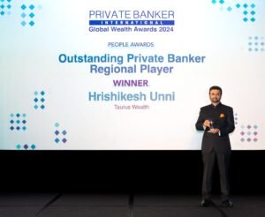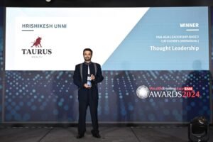 Hrishikesh Unni is our secret weapon. One amongst our large arsenal of secret weapons. Dedicated, very hardworking and totally committed to integrity and building trust through the daily exemplification of his effort towards providing sound advice to all his clients. He has done that for over 10 years with ample measure and I sincerely congratulate him for this stupendous achievement. I am glad apart from Taurus and our clients, the industry at large has recognised Hrishi for the leader he is. The fact that he has been recognised both by WealthBriefingAsia for “Thought Leadership” and by Private Banker International as “Outstanding Private Banker” in the same year is a testament to his brilliance as a Custodian of Trust for his clients and Taurus.